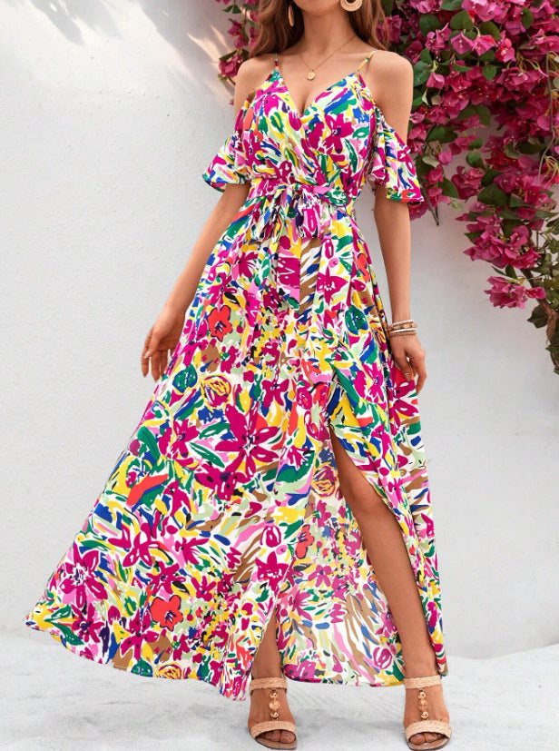 Women’s Sling Irregular Floral Beach Dress – Summer Casual Flowing Vacation Dress
